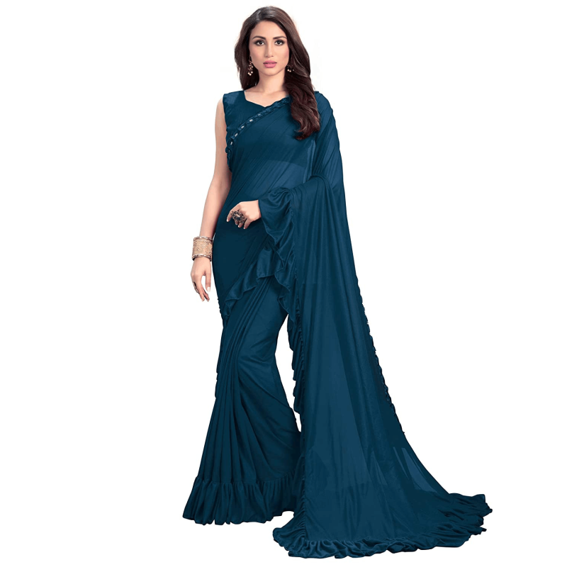 براثام بلو ساري حريري نسائي مع قطعة بلوزة