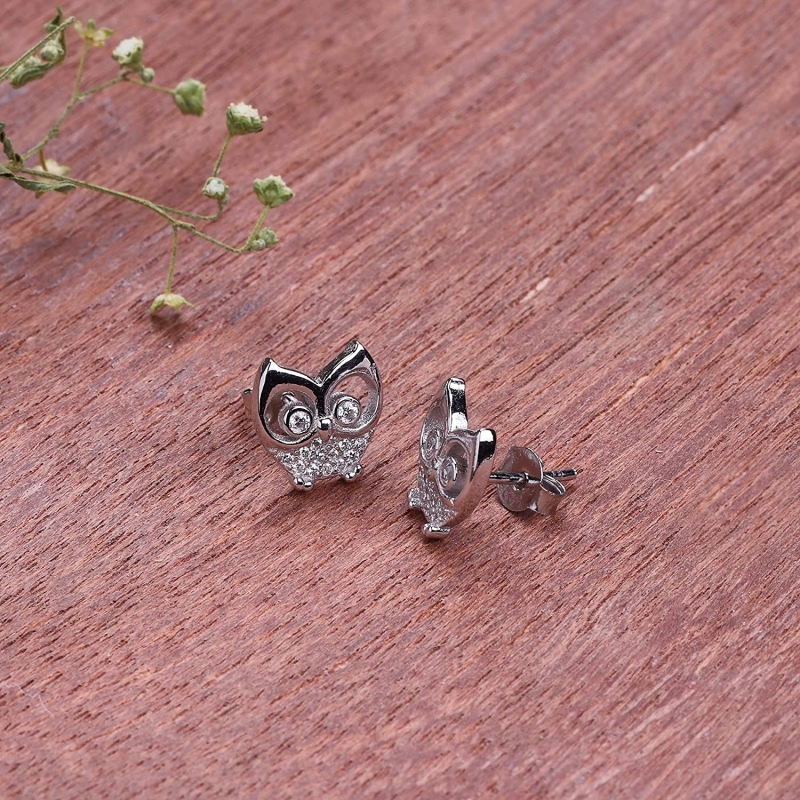 أقراط البومة البراقة من الفضة الإسترليني