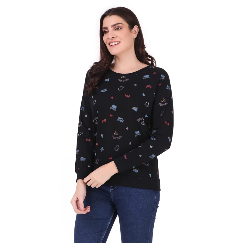 Stories.Label Cotton Printed Sweatshirts for Women in Round Neck and Regular Fit (Sizes Small- 5XL)