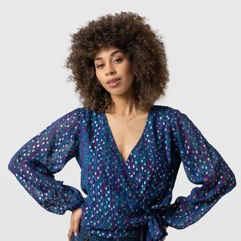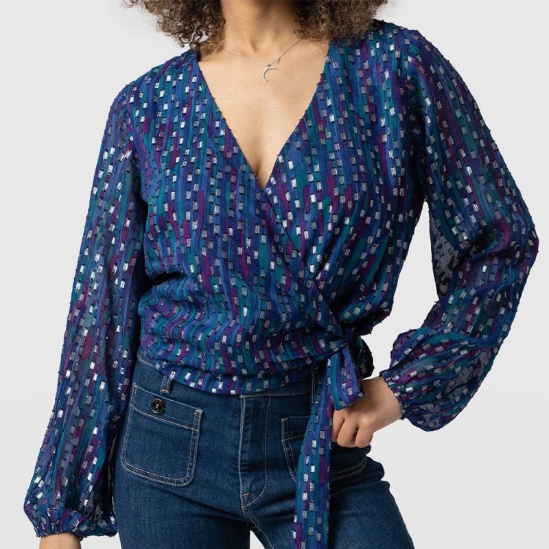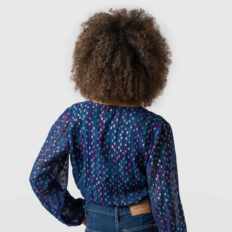 المرأة بلوزة بلوزة زرقاء