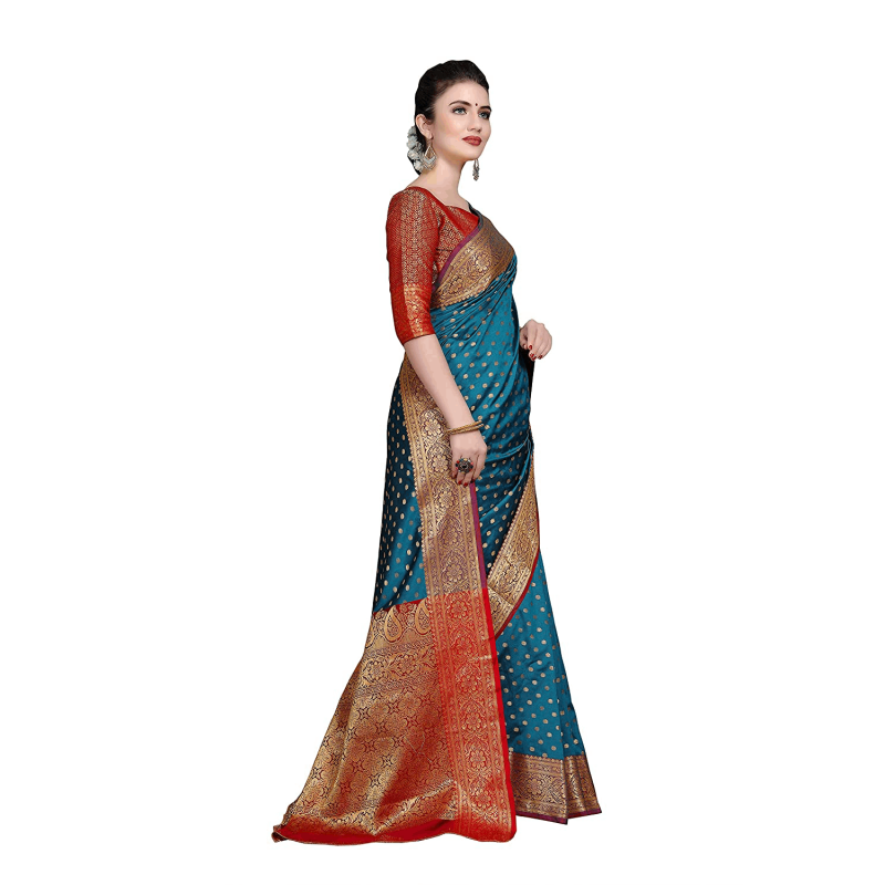 باناراسي ساري حرير نسائي مع بلوزة غير مخيطة