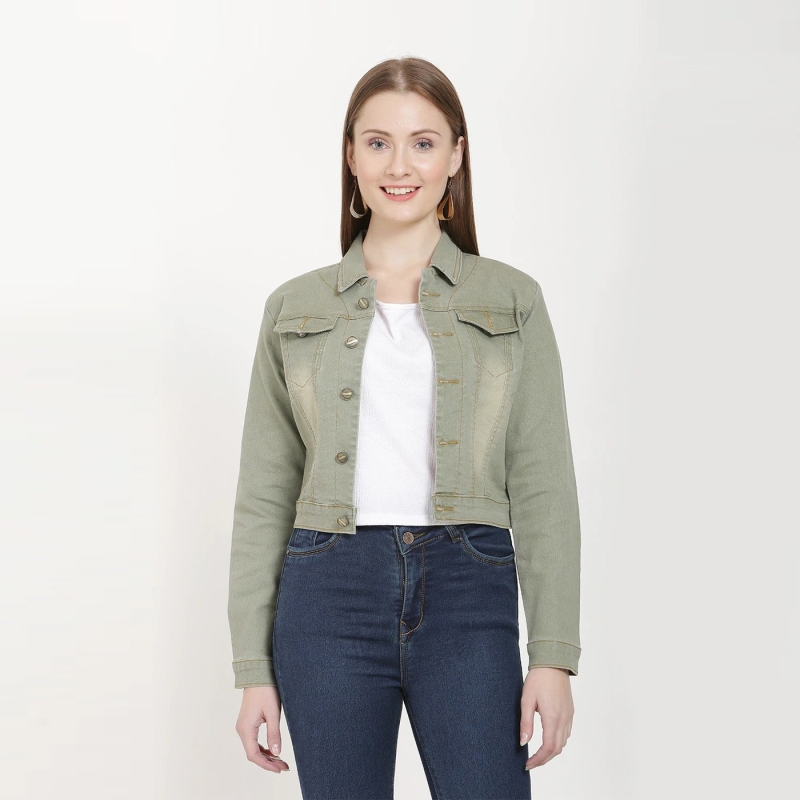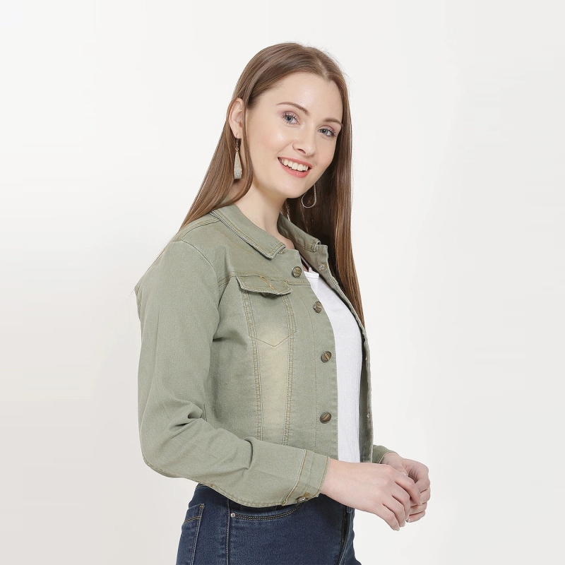 سترة صلبة مغسولة بأزرار ، لها ياقة منتشرة ، 2 جيوب ، زر للإغلاق ، أكمام طويلة ، حافة مستقيمة ، وقطن.
