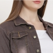 سترة صلبة مغسولة بأزرار ، لها ياقة منتشرة ، 2 جيوب ، زر للإغلاق ، أكمام طويلة ، حافة مستقيمة ، وقطن.